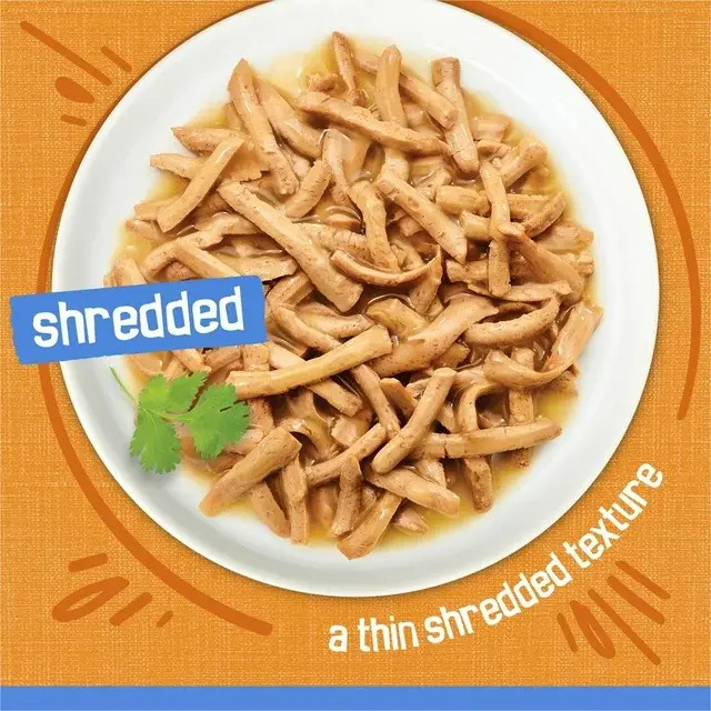 A delightful cat food made with real chicken shreds