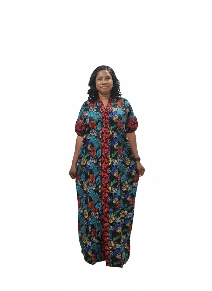 Beautiful Multicolor Long Dress 1% Ankara Cotton for Women. Size 12