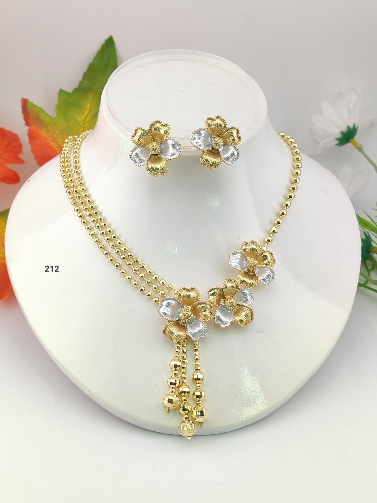Beautiful Non-Tarnish Women Gold and Silver Necklace with Earrings Set