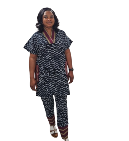 Beautiful ready-to-wear 2-piece set, Ankara Pant and Top mixed with Aso Oke. Size 12 and 14.